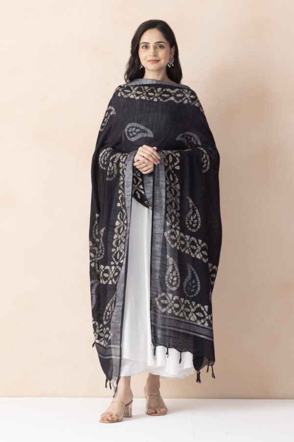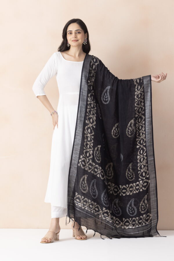 A R SILK DUPATTA HUB Women’s Black Cotton Block Print Light weight Dupatta Chunnis(ARS01314)
