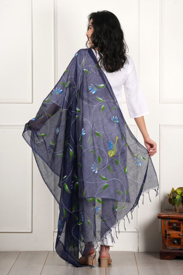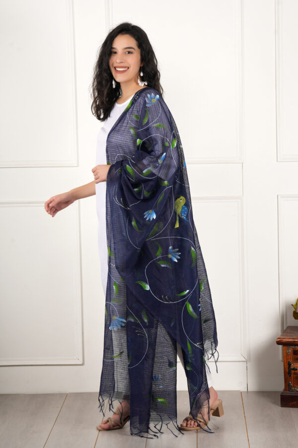 Color: Blue, Dupatta Work: Pure Hand Painted Multicolour Floral