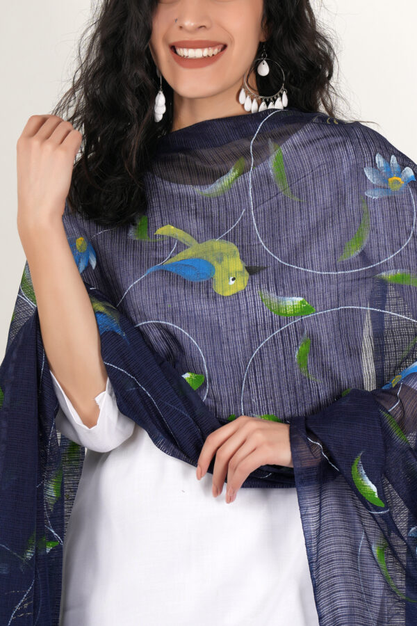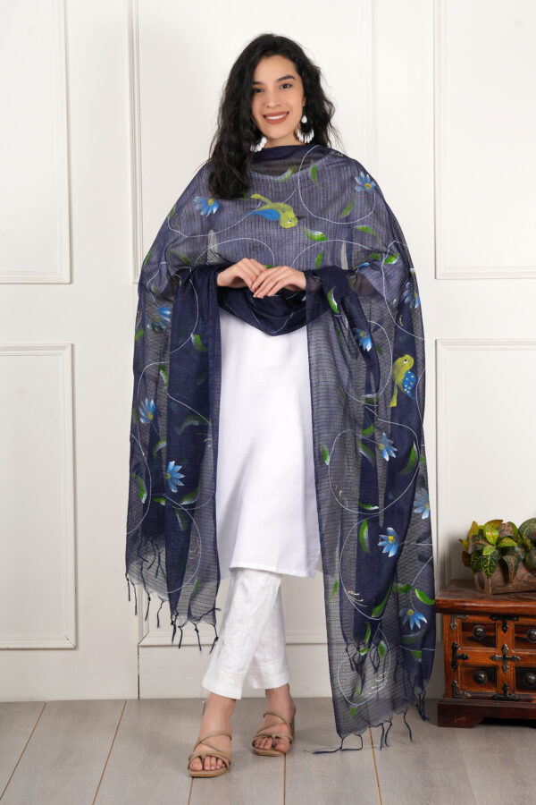 A R Silk DUPATTA HUB Women’s Blue Pure Hand Painted Multicolour Floral Kota Doria dupatta for woman(ARS01178)