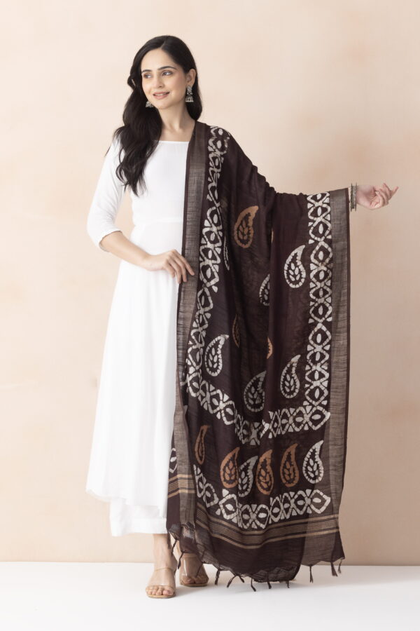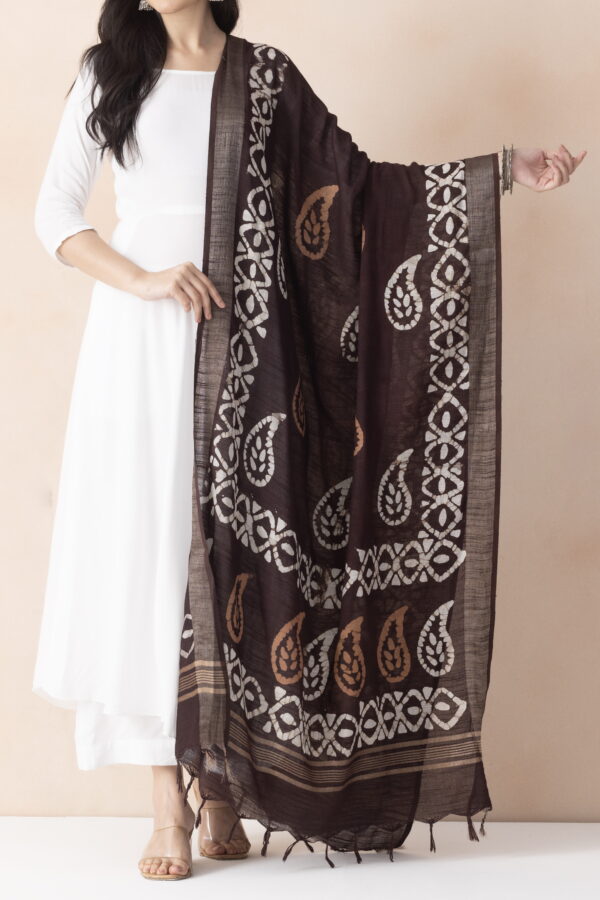 Color:Brown, Dupatta Work:Block Print