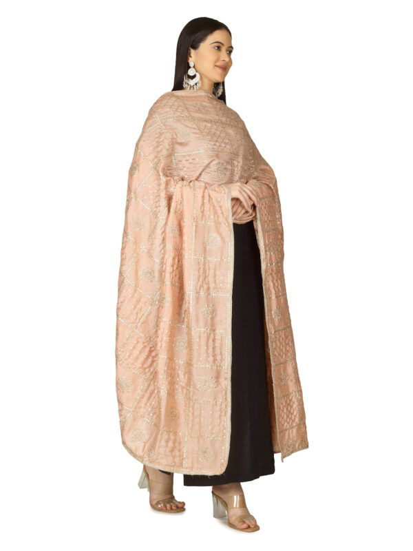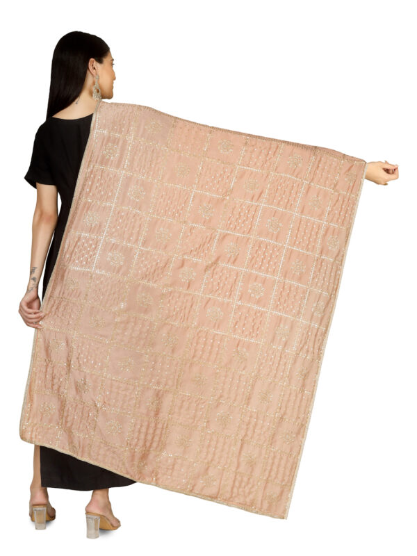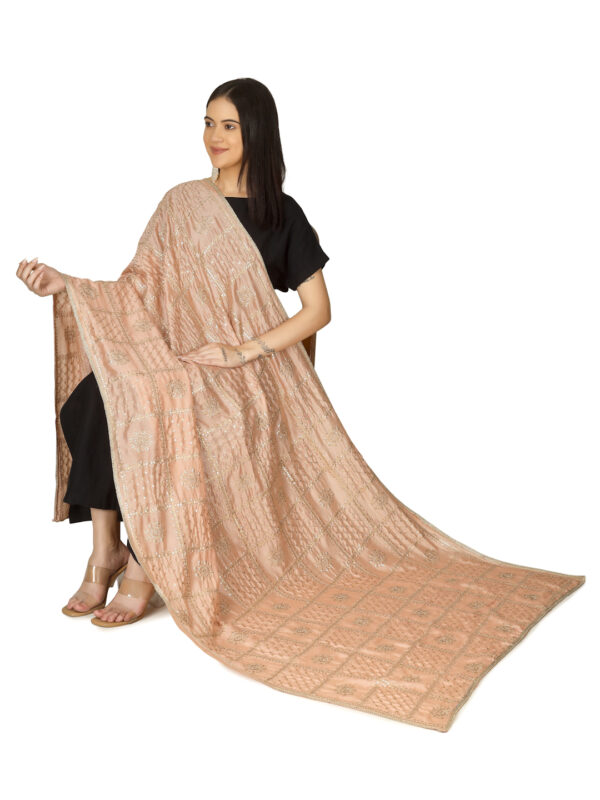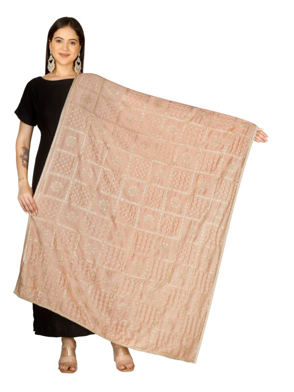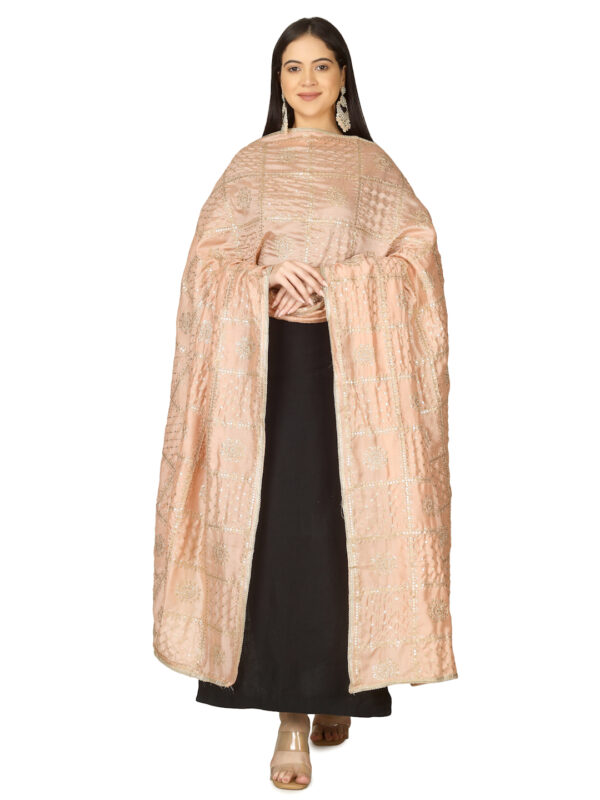 A R SILK DUPATTA HUB Women’s Floral Embroidery Zari & Sequence Work Silk Blend Peach Fancy and Bridal Dupatta(ARS01233)