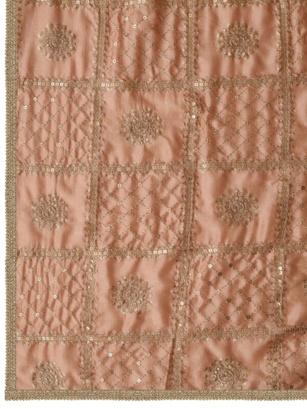 Color:Peach, Dupatta Work: Floral Embroidery Zari & Sequence Work
