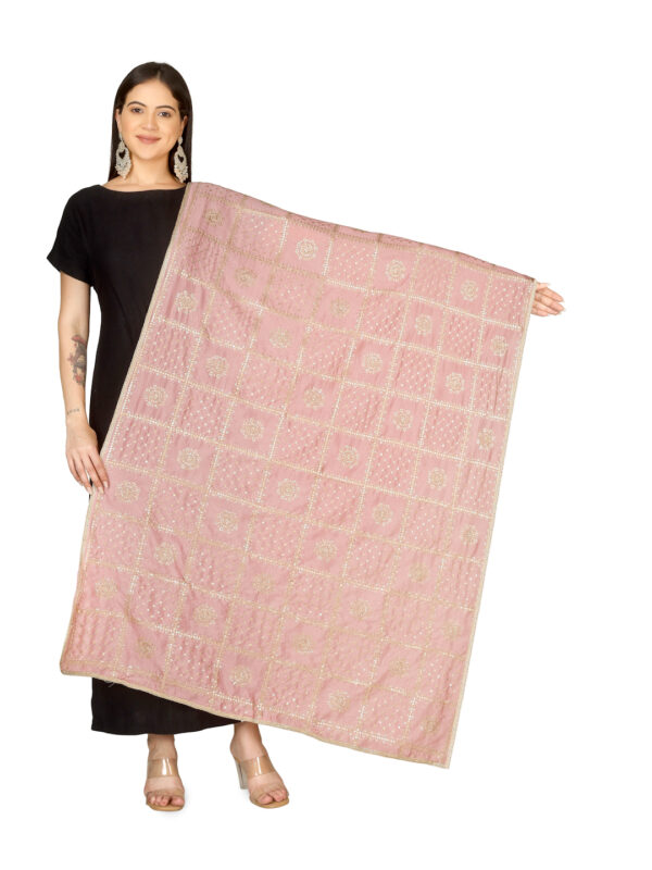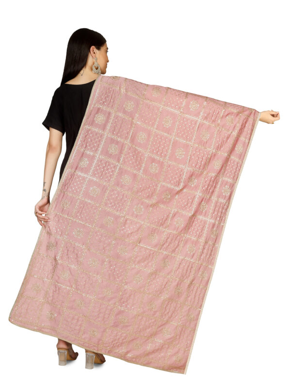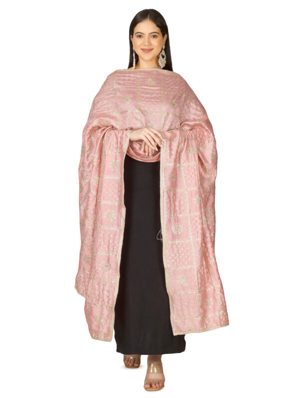 A R SILK DUPATTA HUB Women’s Floral Embroidery Zari & Sequence Work Silk Blend Pyazi Fancy and Bridal Dupatta(ARS01231)