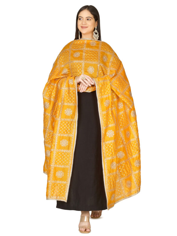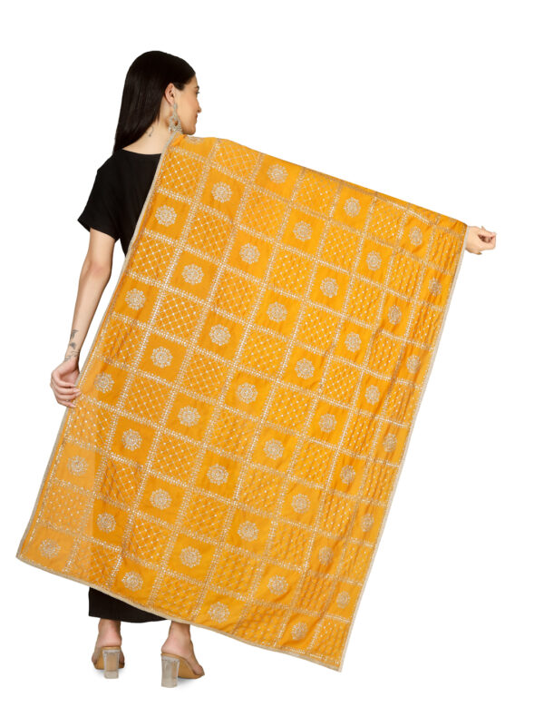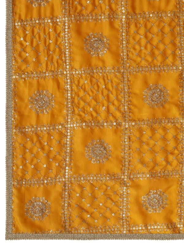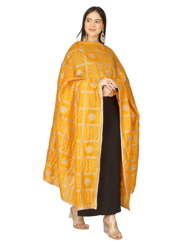 A R SILK DUPATTA HUB Women’s Floral Embroidery Zari & Sequence Work Silk Blend Yellow Fancy and Bridal Dupatta(ARS01232)