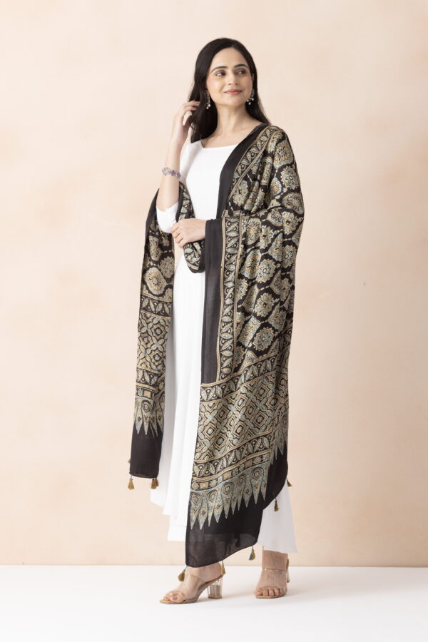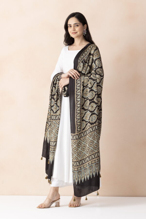 A R SILK DUPATTA HUB Women’s Gold Modal Silk Handblock Printed Ajrakh Fancy Dupatta(ARS01329)