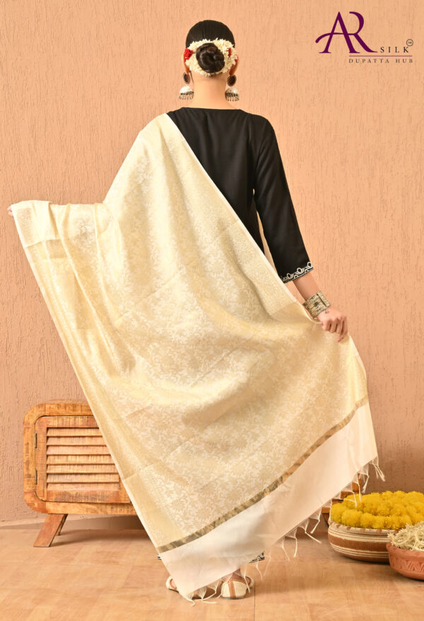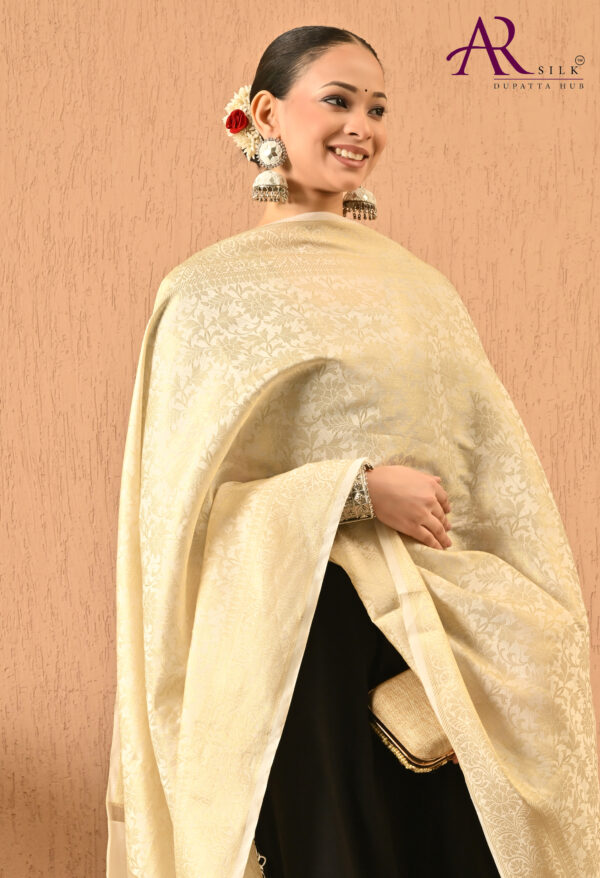 A R SILK DUPATTA HUB Women’s Golden Zari Work Banarasi Silk Dupatta/Chunni with floral Jaal design(ARS01141)