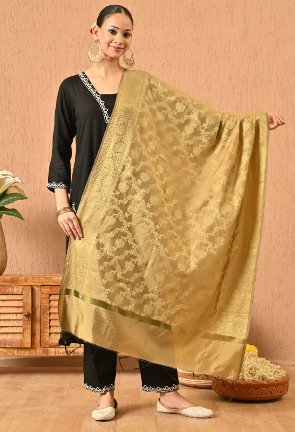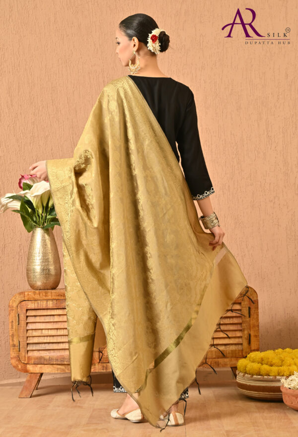 A R SILK DUPATTA HUB Women’s Golden Zari Work Banarasi Silk Dupatta/Chunni with floral Jaal design(ARS01142)