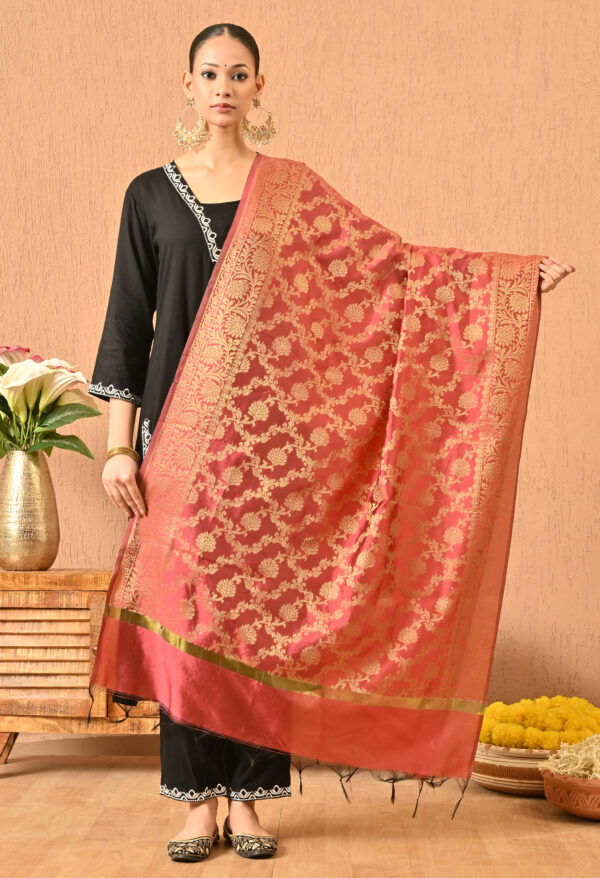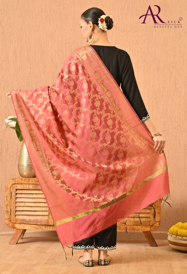 A R SILK DUPATTA HUB Women’s Golden Zari Work Banarasi Silk Dupatta/Chunni with floral Jaal design(ARS01143)
