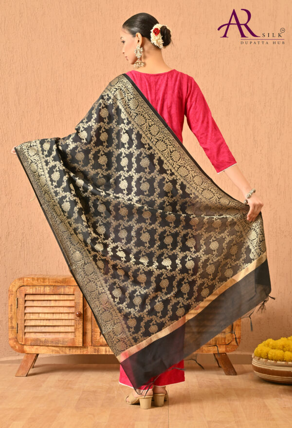 A R SILK DUPATTA HUB Women’s Golden Zari Work Banarasi Silk Dupatta/Chunni with floral Jaal design(ARS01148)