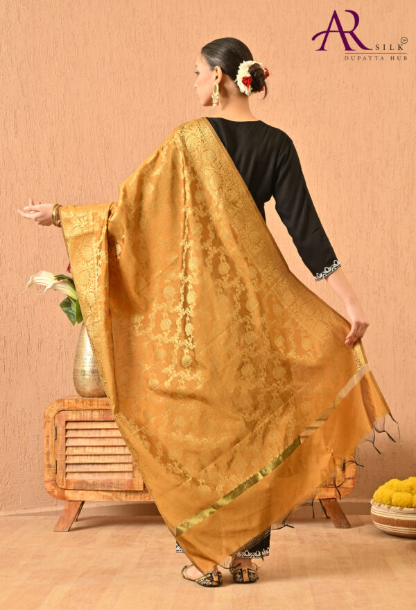 A R SILK DUPATTA HUB Women’s Golden Zari Work Banarasi Silk Dupatta/Chunni with floral Jaal design(ARS01151)