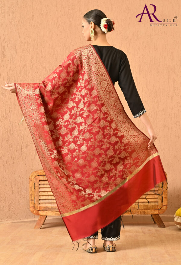 A R SILK DUPATTA HUB Women’s Golden Zari Work Banarasi Silk Dupatta/Chunni with floral Jaal design(ARS01152)