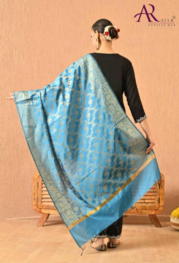 A R SILK DUPATTA HUB Women’s Golden Zari Work Banarasi Silk Dupatta/Chunni with floral Jaal design(ARS01153)