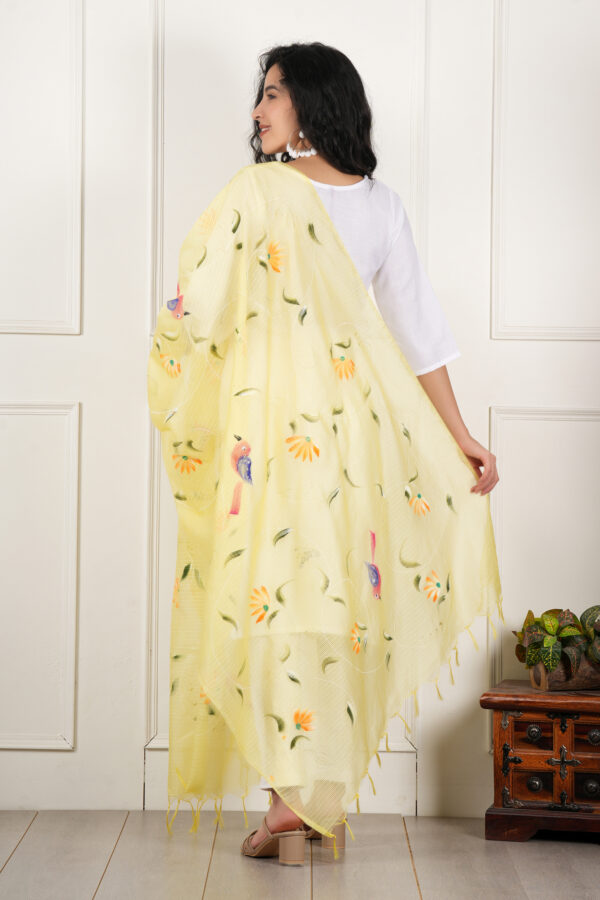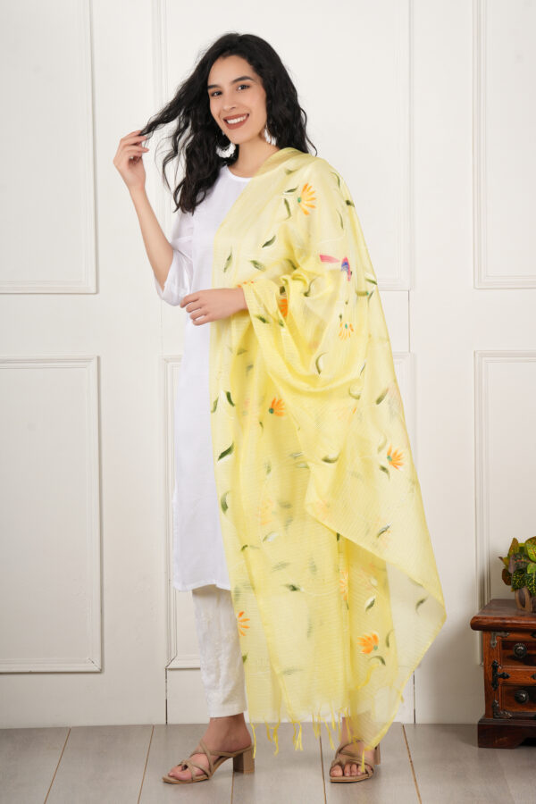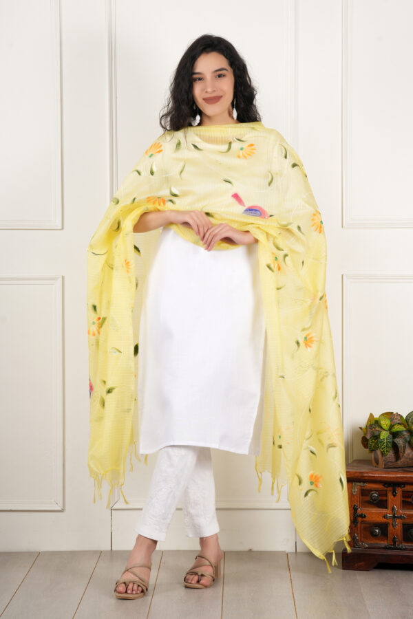 A R Silk DUPATTA HUB Women’s Lemon Pure Hand Painted Multicolour Floral Kota Doria dupatta for woman(ARS01177)