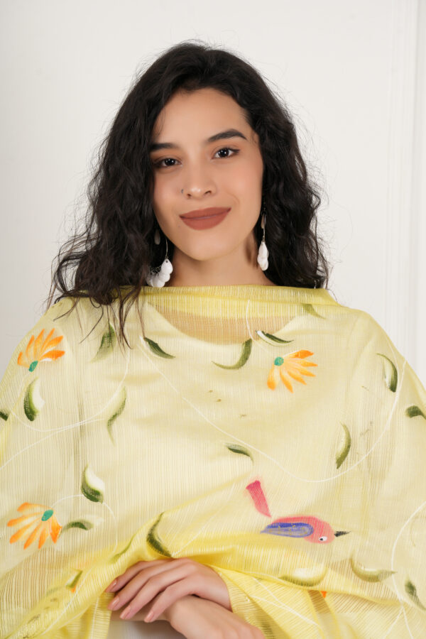Color: Lemon, Dupatta Work: Pure Hand Painted Multicolour Floral