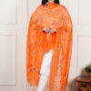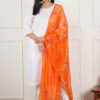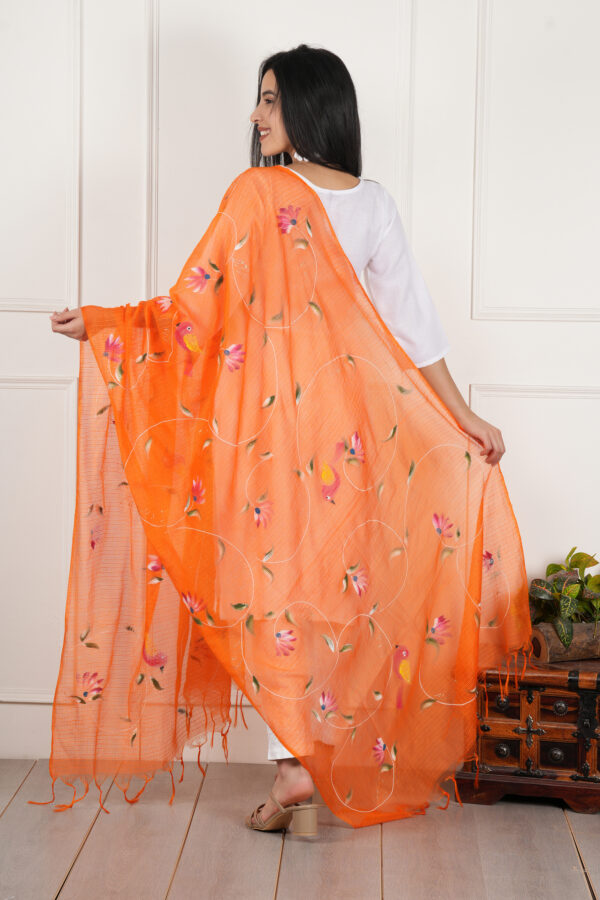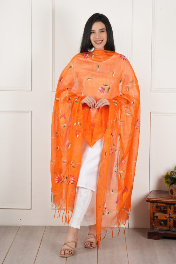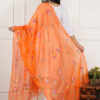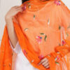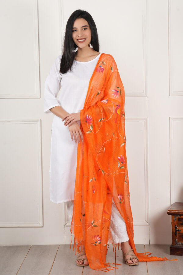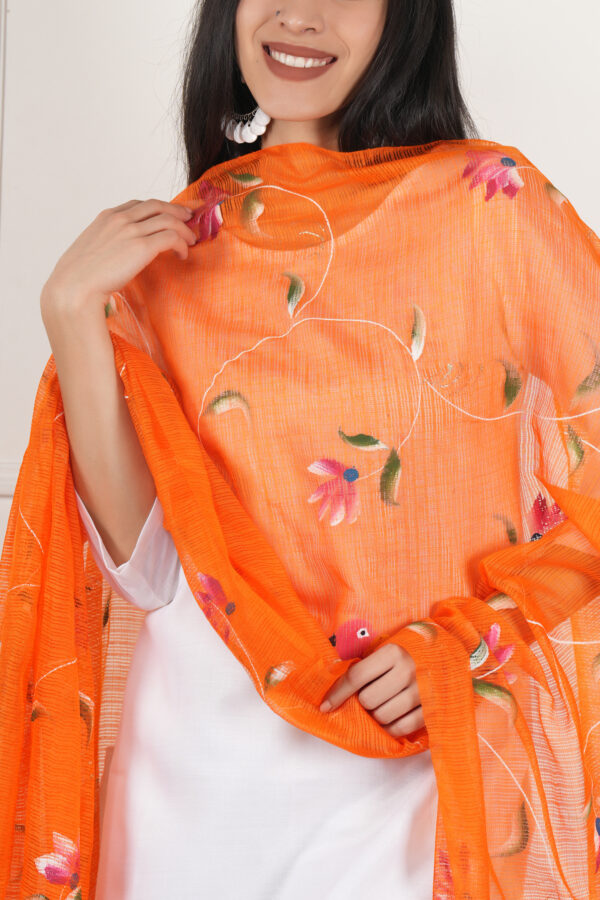 Color: orange, Dupatta Work: Pure Hand Painted Multicolour Floral