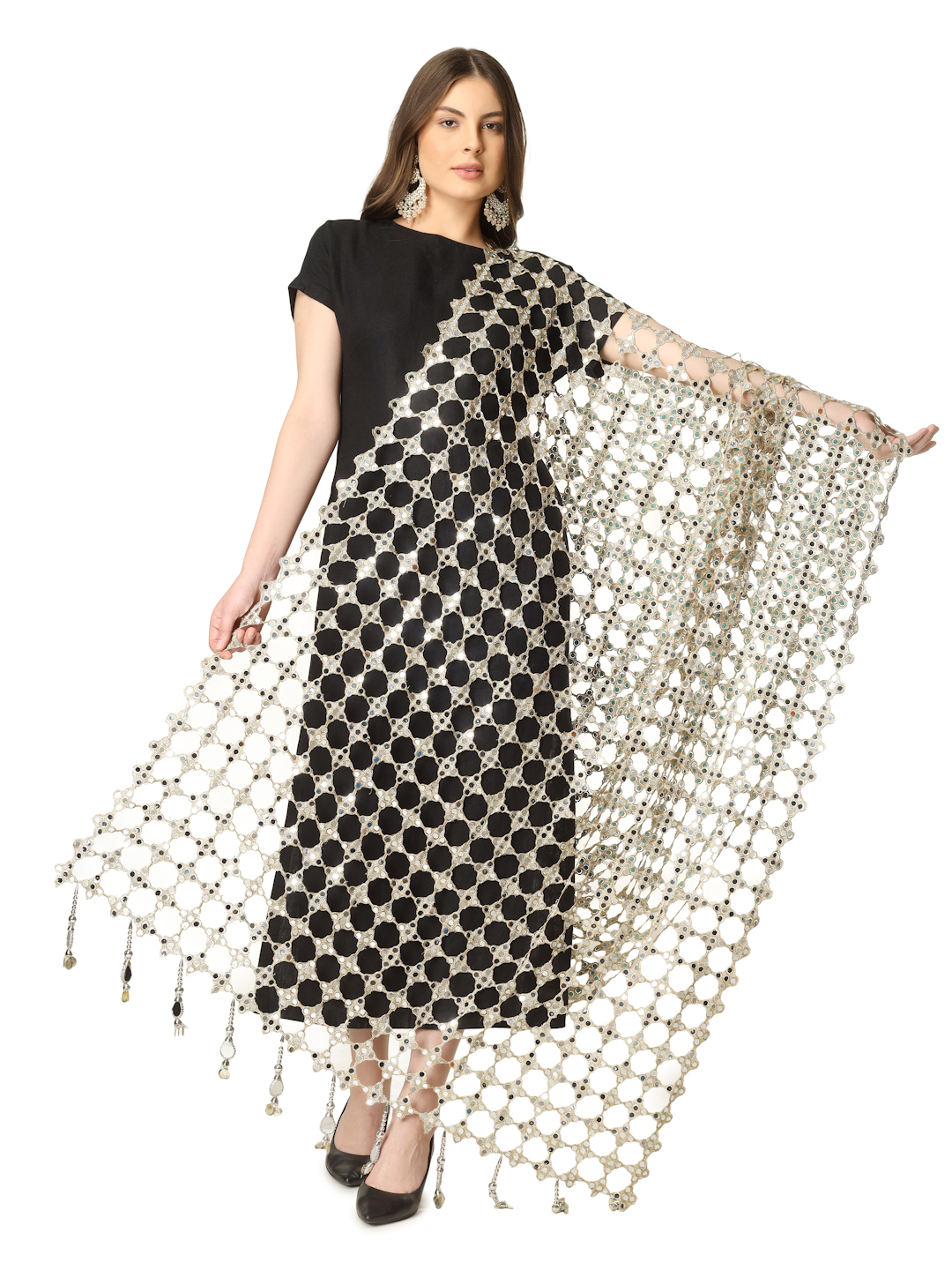 A R SILK DUPATTA HUB Women’s Original Mirror Work With Hand Made Tassels Golden Fancy and Bridal Dupatta(ARS01238)