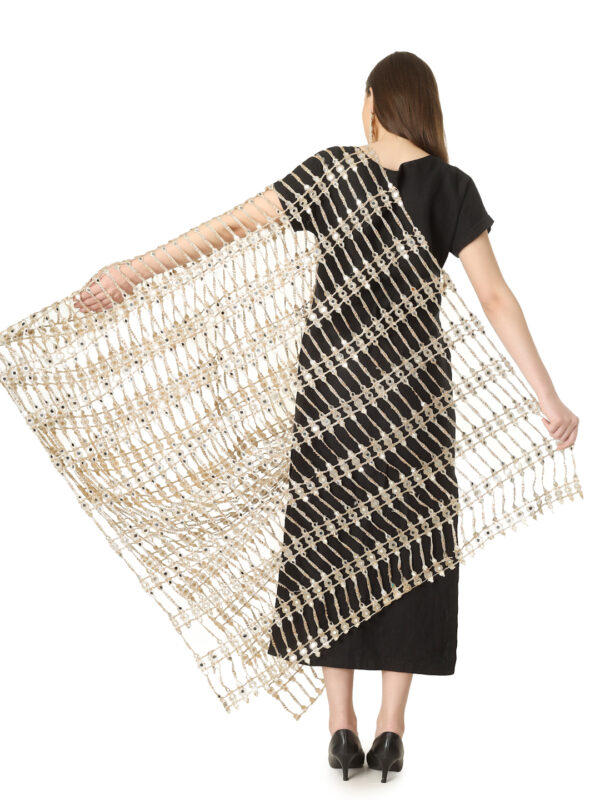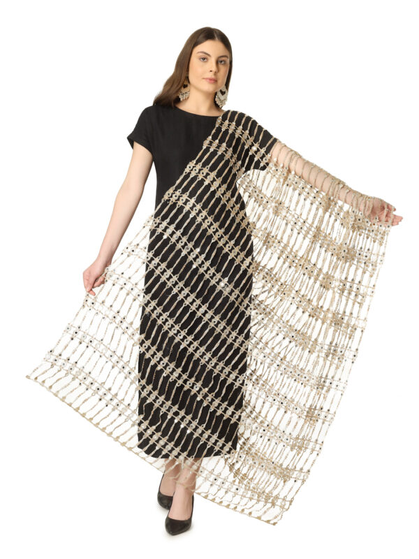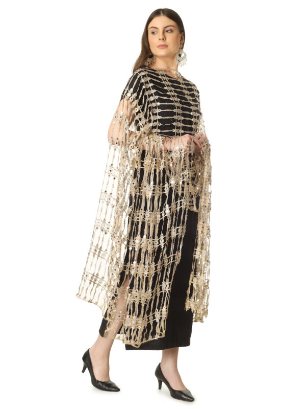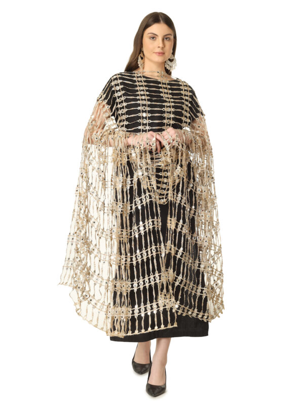 A R SILK DUPATTA HUB Women’s Original Mirror Work With Pearl Work Golden Fancy and Bridal Dupatta(ARS01236)