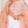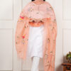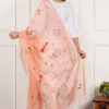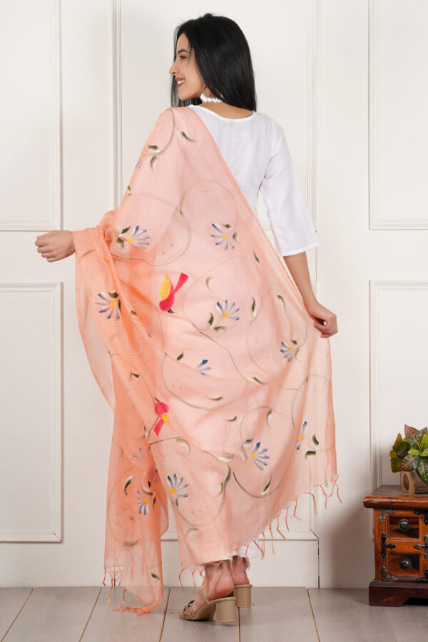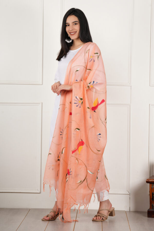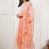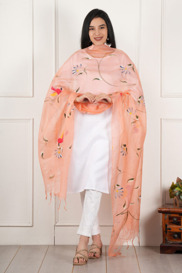 Color: peach, Dupatta Work: Pure Hand Painted Multicolour Floral