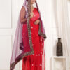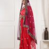 Color:Wine, Dupatta Work: Net Zari Embroidery Work with 4 Side Lace