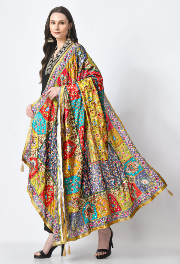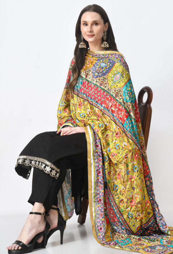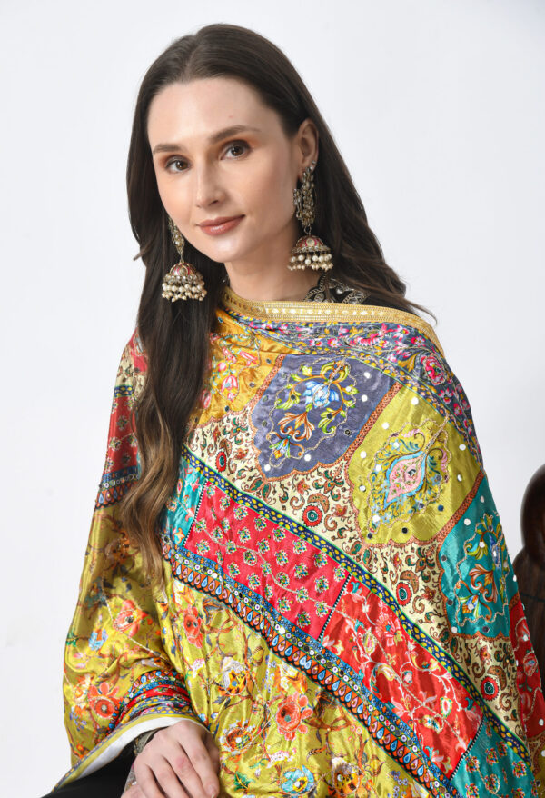 A R Silk Women’s Pakistani Heavy Silk Dupatta with Mirror Work with Colorful Print Fancy Dupaatta (ARS01030)