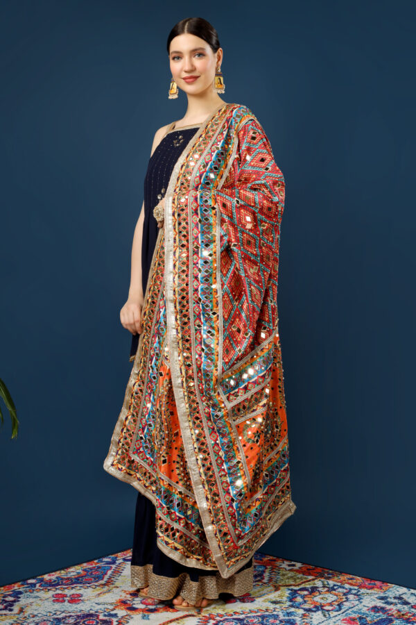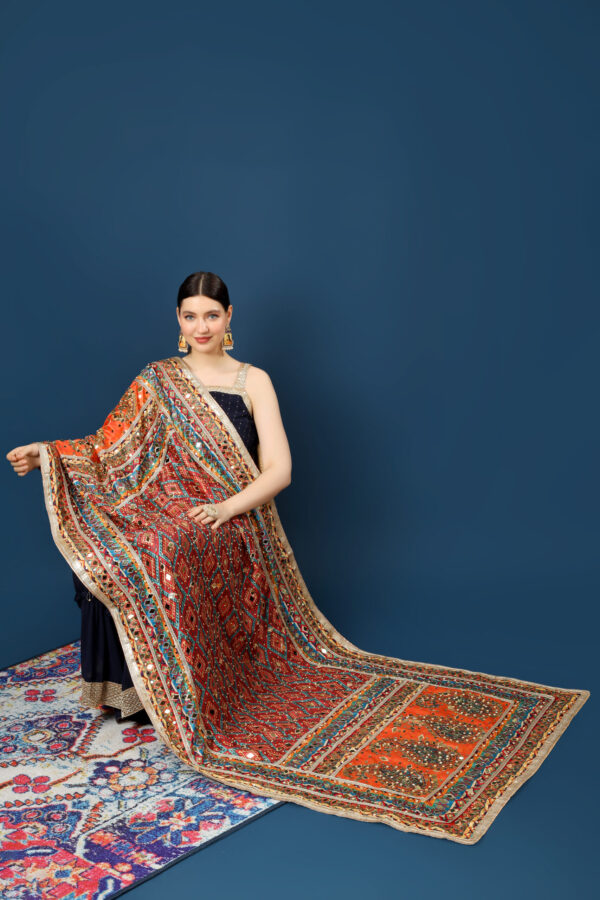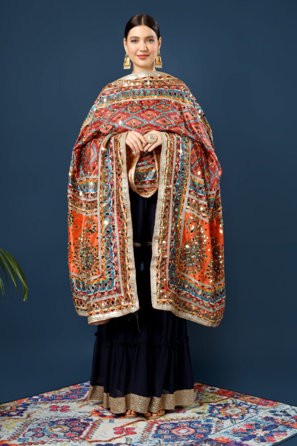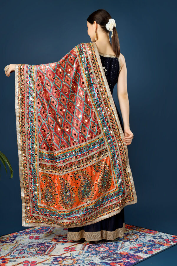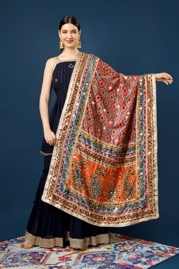 A R Silk Women’s Pakistani Heavy Silk Dupatta with Mirror Work with Colorful Print Fancy Dupaatta (ARS0855)