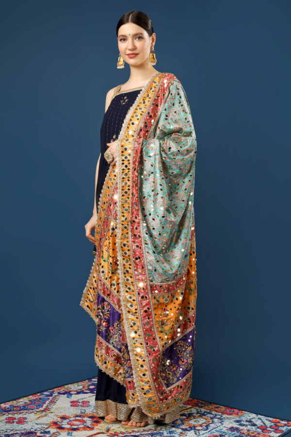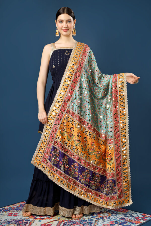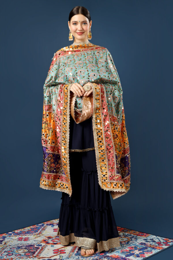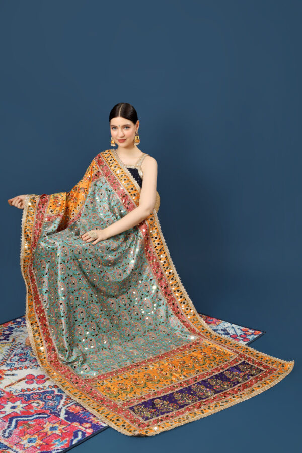 A R Silk Women’s Pakistani Heavy Silk Dupatta with Mirror Work with Colorful Print Fancy Dupaatta (ARS0858)