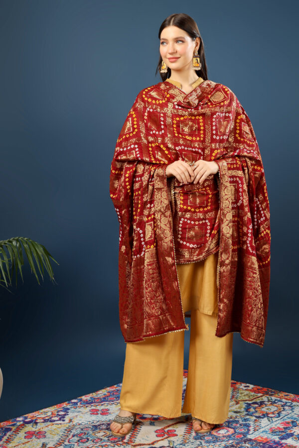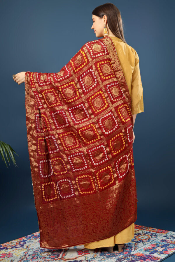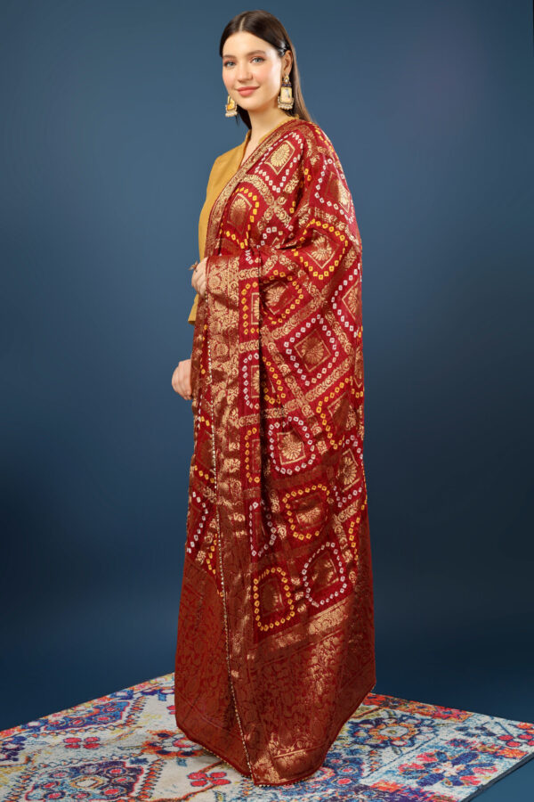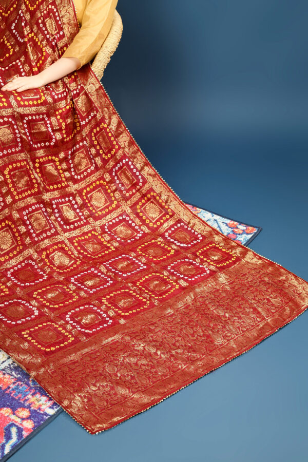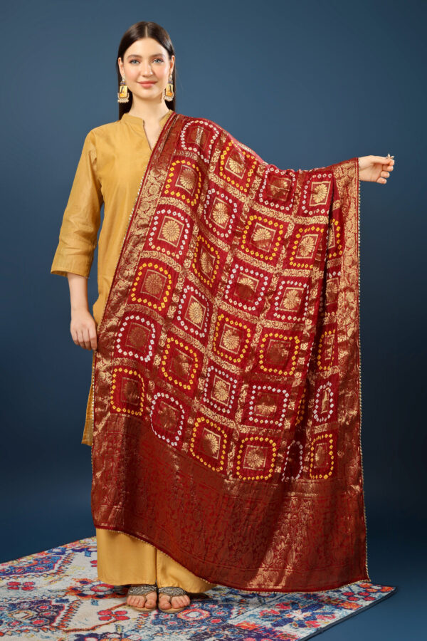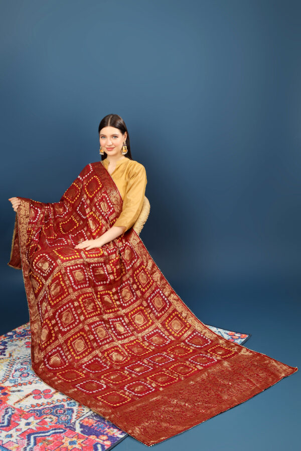 A R Silk Women’s Silk Gharchola Jaipuri Bhandej With Lotus Zari Work Maroon Fancy Dupatta(ARS0826)