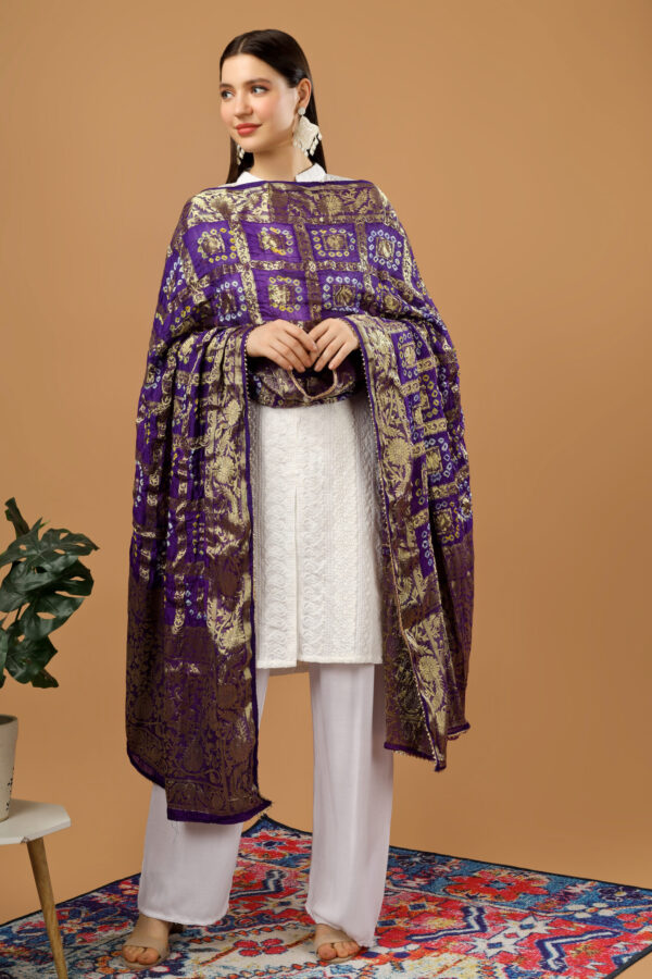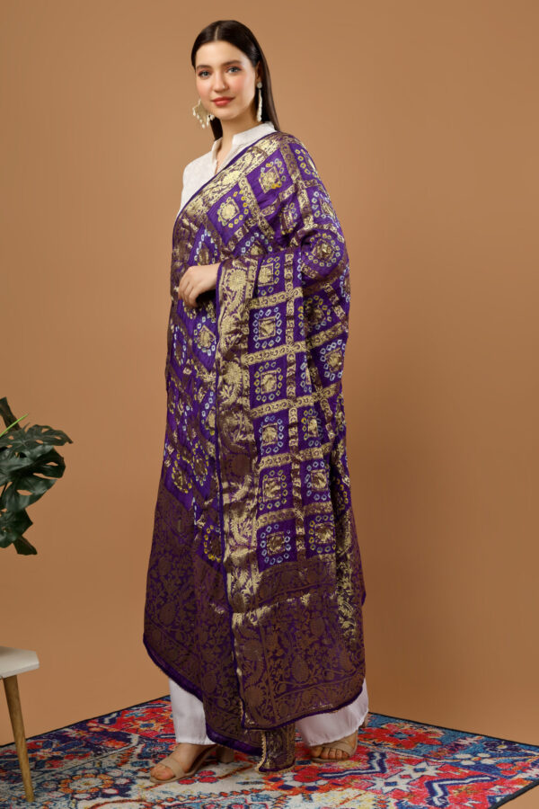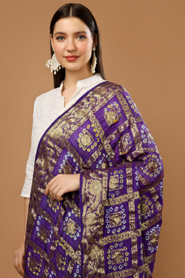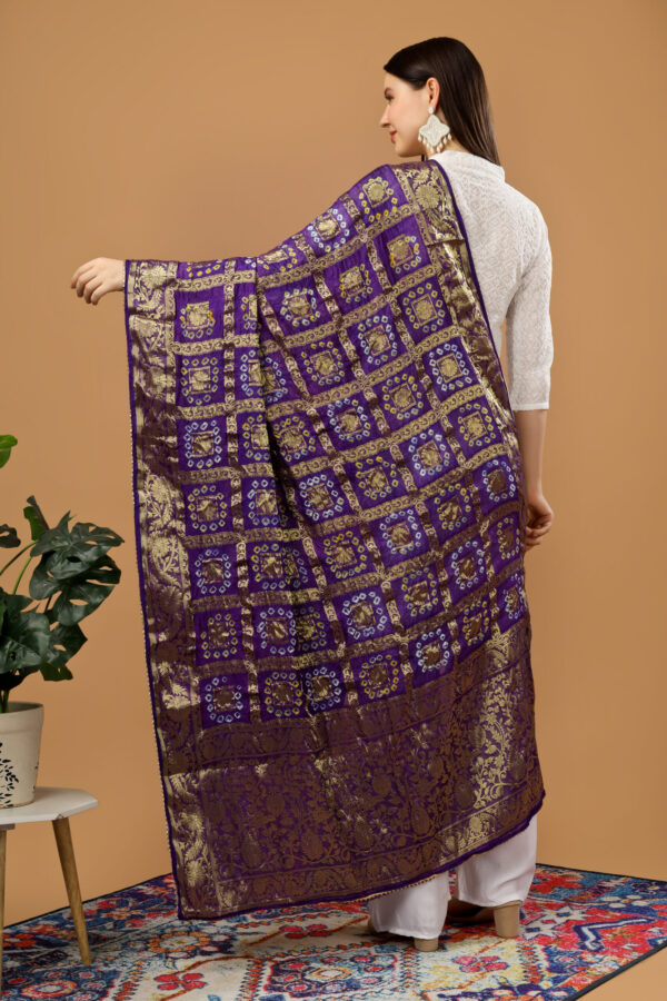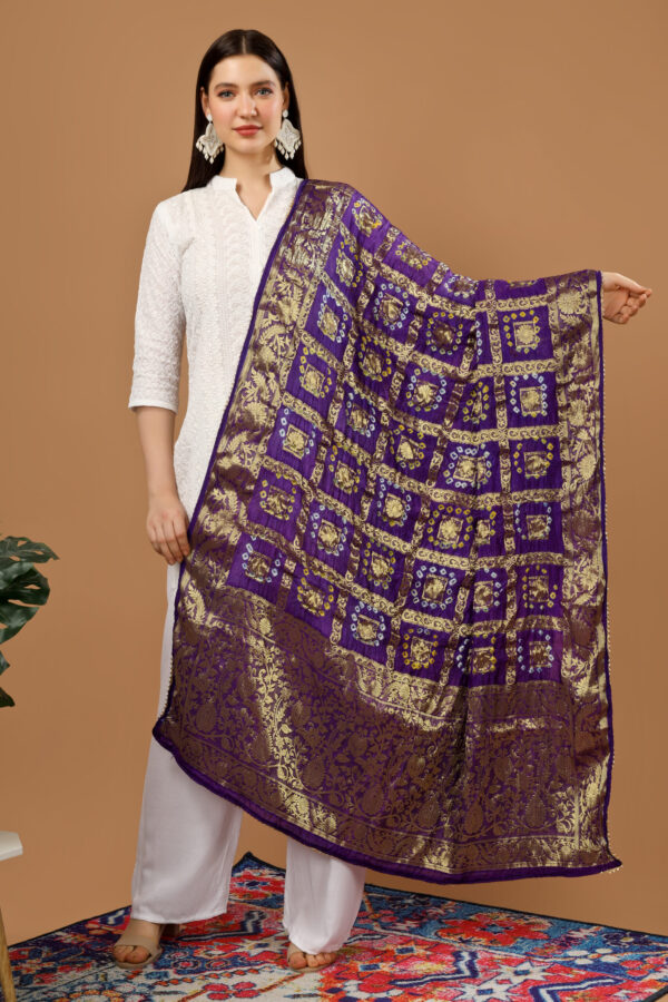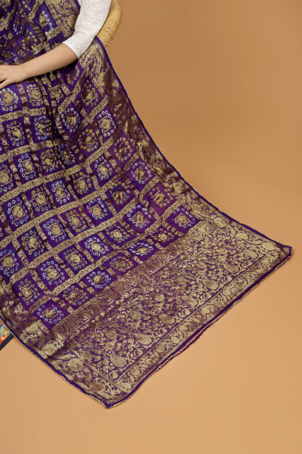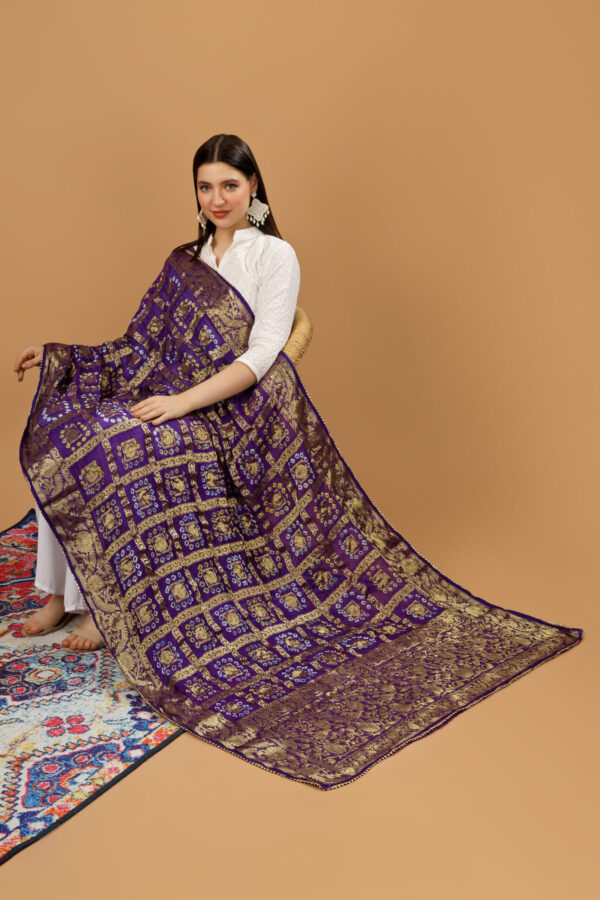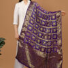A R Silk Women’s Silk Gharchola Jaipuri Bhandej With Lotus Zari Work Purple Fancy Dupatta(ARS0835)