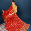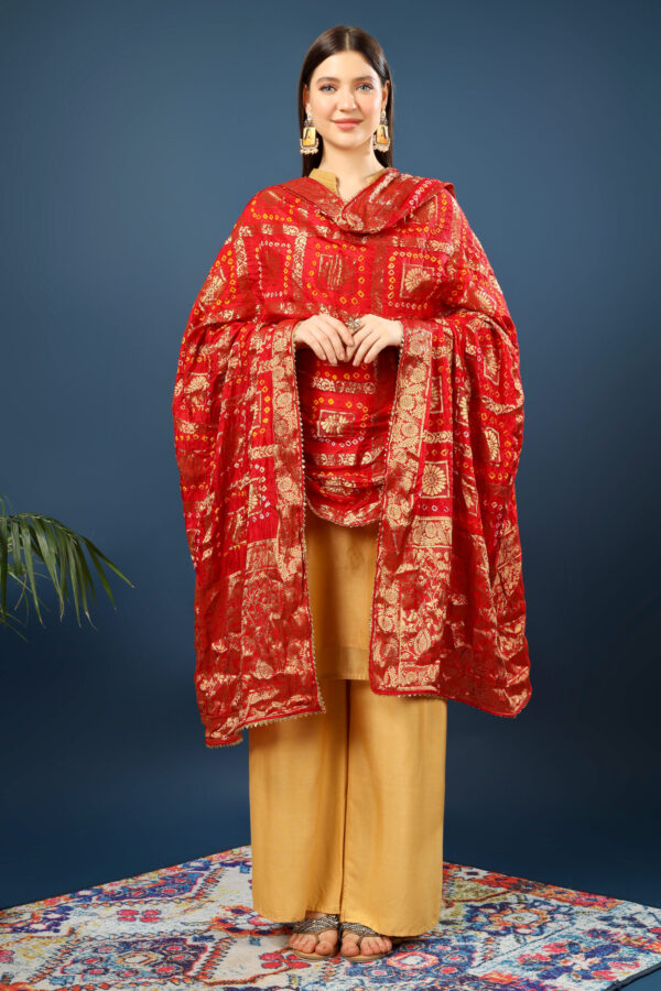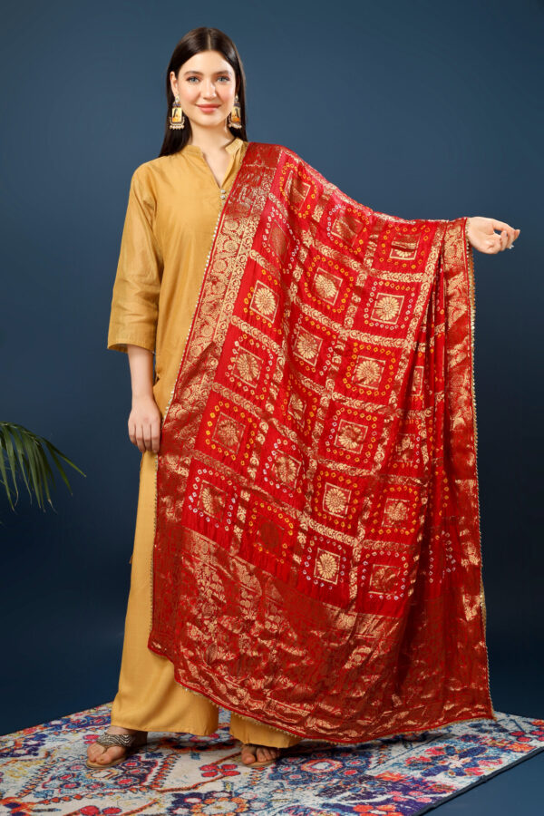A R Silk Women’s Silk Gharchola Jaipuri Bhandej With Lotus Zari Work Red Fancy Dupatta(ARS0825)