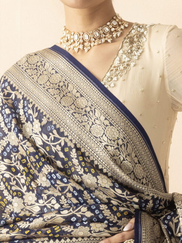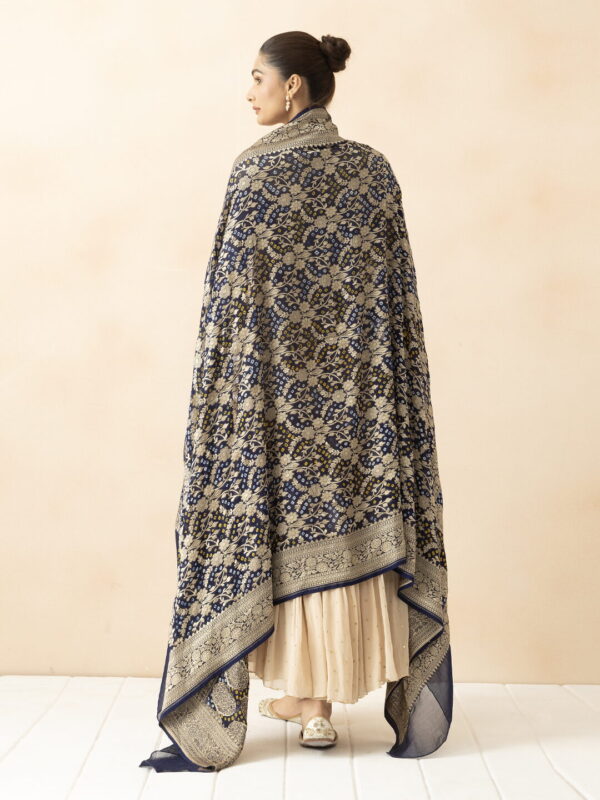 A R SILK DUPATTA HUB Blue Pure Khaddi Georgette Bandhani Banarasi Handloom Premium & Luxurious Collection Fancy Dupatta(ARS01289)