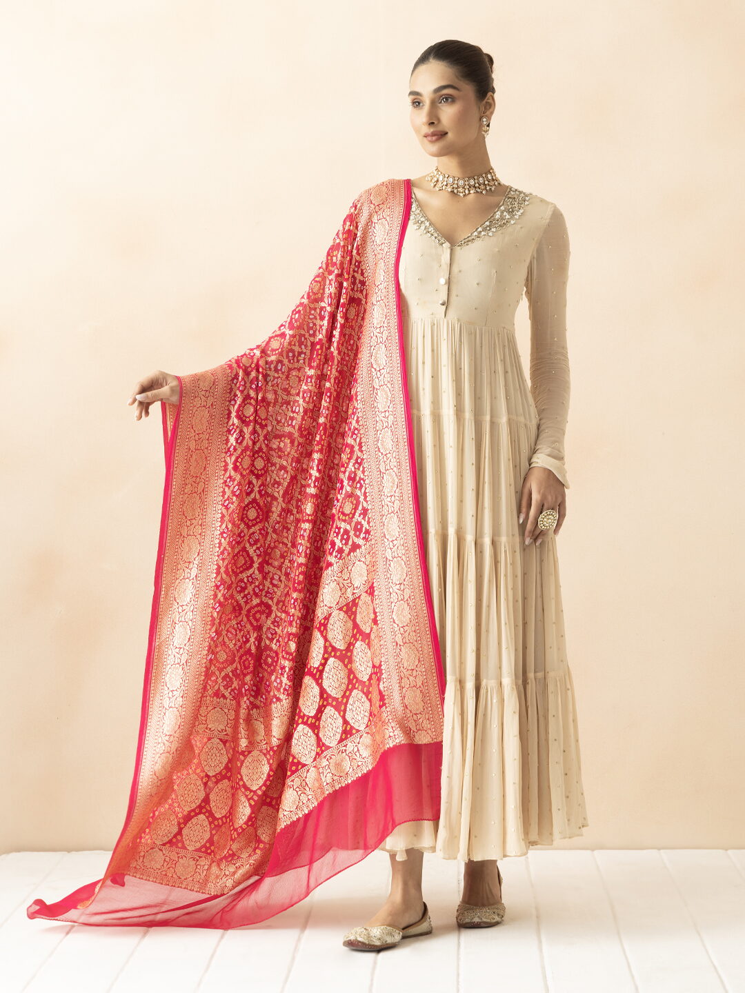 A R SILK DUPATTA HUB Pure Khaddi Georgette Bandhani Banarasi Handloom Premium & Luxurious Collection Dupatta/Chunni Finish off your fashion wear with something that’s sure to get you noticed. These exclusive pattern and color combinations can be paired with your favorite coat, jacket, sweater, or suit. Lay this dupatta over your shoulders for those long relaxing shopping days or wrap it around and tuck it into your suit jacket for a busy day in the office. Solve your gifting worries today with something that’s truly unique! Dupattas are one of the most versatile accessories in your wardrobe and it makes a great gift for anyone who’s into fashion.