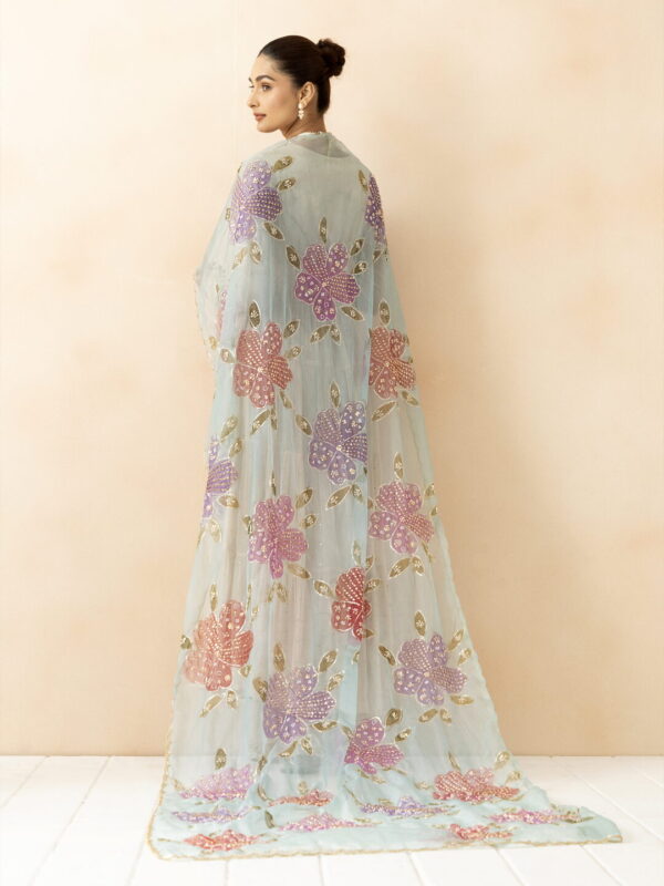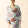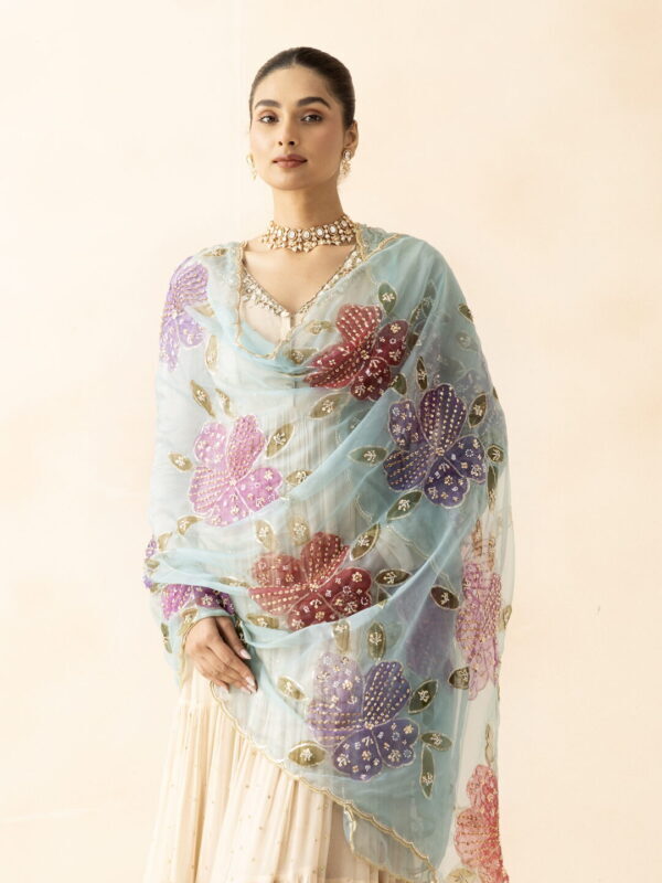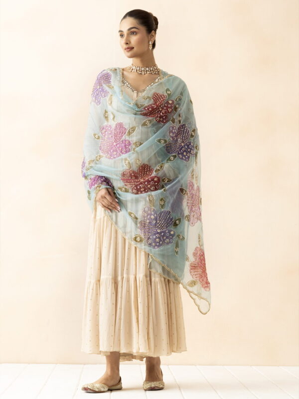 A R SILK DUPATTA HUB Women’s Firozi & Maroon Organza Hand Printing with Embroidered Fancy Dupatta(ARS01300)