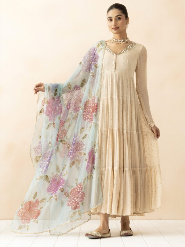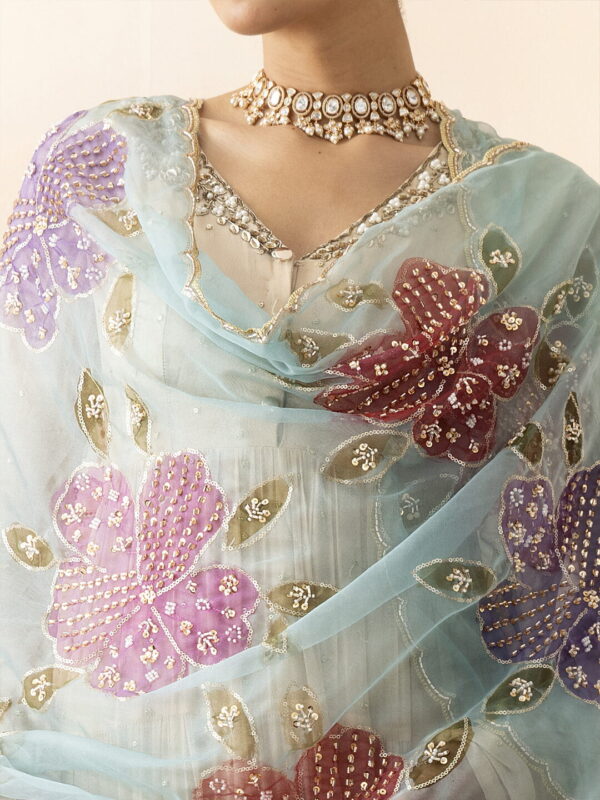 Color:Firozi & Maroon, Dupatta Work:Stone Work